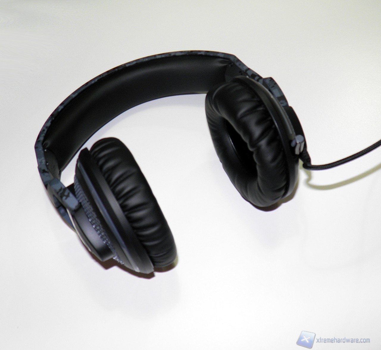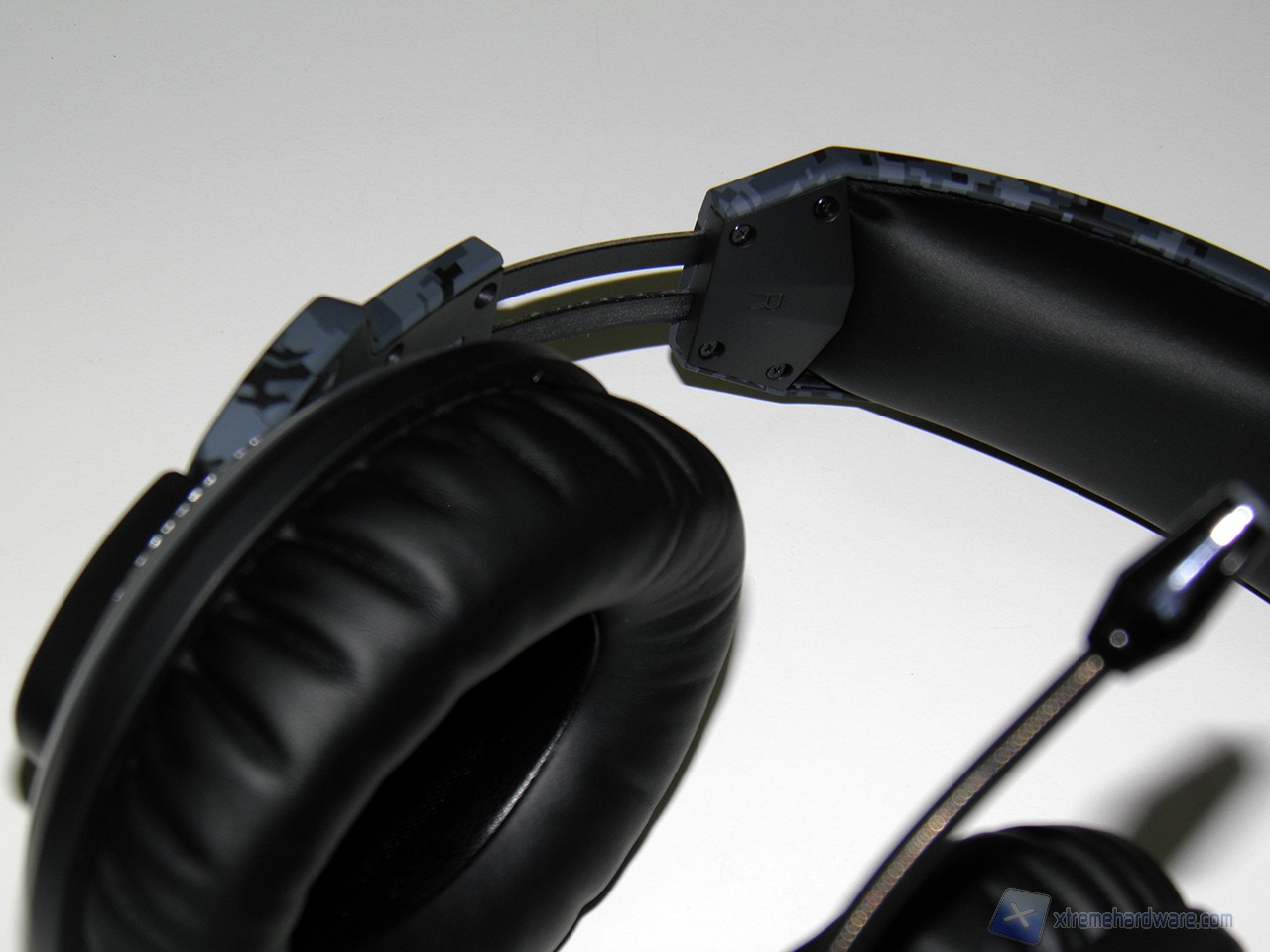 Sempre sul lato sinistro, come possiamo osservare, parte il cavo unilaterale che connette microfono e driver, tramite jack da 3.5mm, alla fonte audio. L'estensione delle cuffie è supportata dall'archetto interno metallico decisamente flessibile. Non sono possibili rotazioni trasversali dei padiglioni.