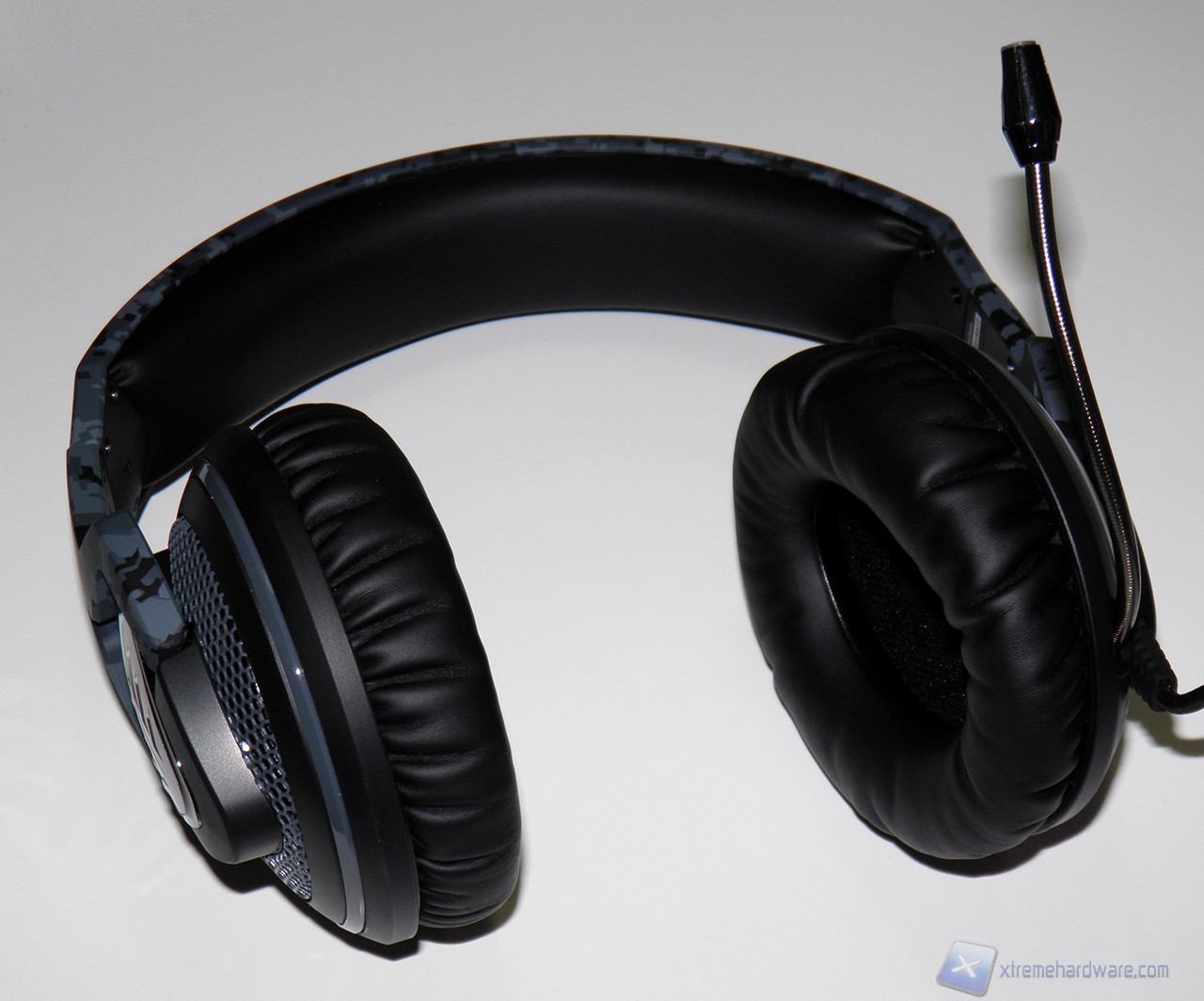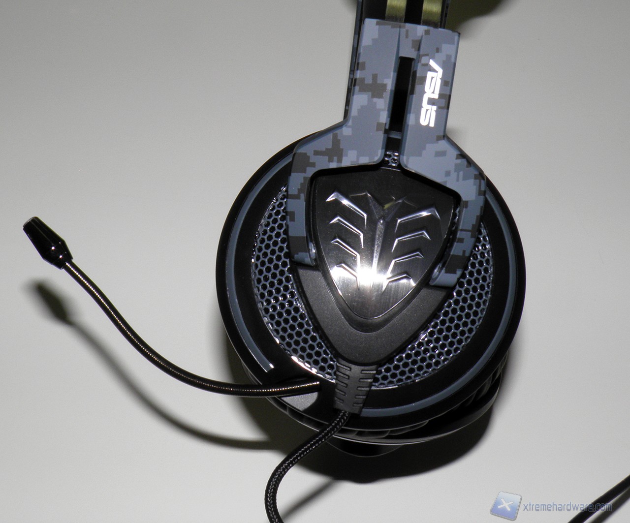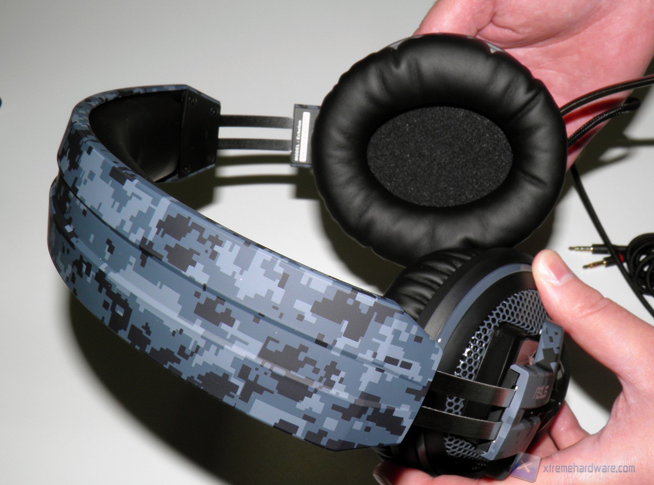 Le ASUS Echelon sono decisamente pregiate ad un primo contatto, la finitura Camo che caratterizza questo nuovo modello, oltre ad essere bella esteticamente, è leggermente gommata e quindi molto piacevole al tatto. Anche qui troviamo due inserti metallici sui padiglioni molto belli da vedere.