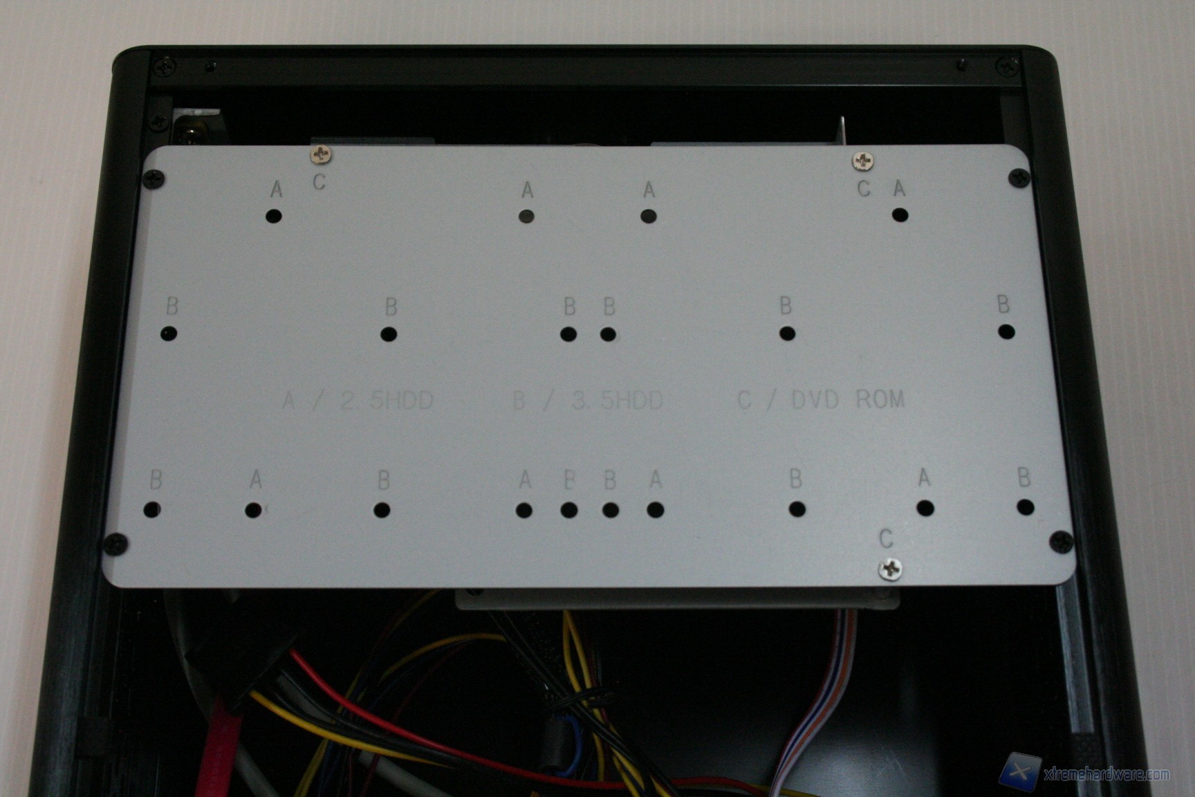 Il layout interno dei Diamond è particolare in quanto oltre ad essere davvero elementare, integra un alimentatore nella parte frontale e connettori preinstallati e precablati, per facilitare la procedura di installazione. Nel Diamond5, come possiamo osservare dalle fotografie ci troviamo subito dinanzi ad un plate superiore che permette l’installazione degli hard disk, tramite la semplice apposizione inferiore e serraggio tramite viteria dedicata.